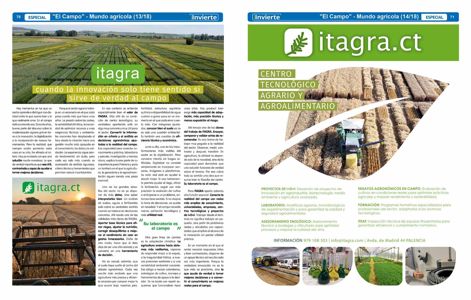 Hace unos días se publicó este artículo sobre nuestro trabajo en ITAGRA en Periodicos Invierte Palencia Invierte y Palencia en la Red.